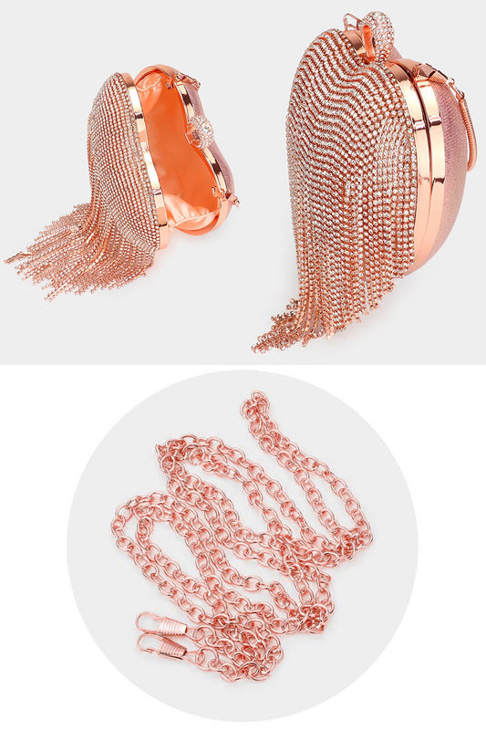 Elegant Rhinestone Fringe Heart Clutch