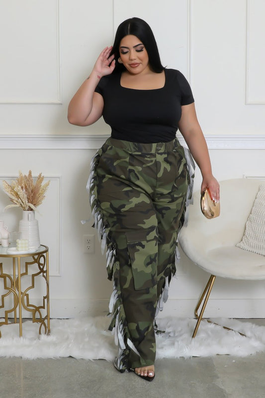Fringed Detail Wide Leg Camo Pants (Curvy)