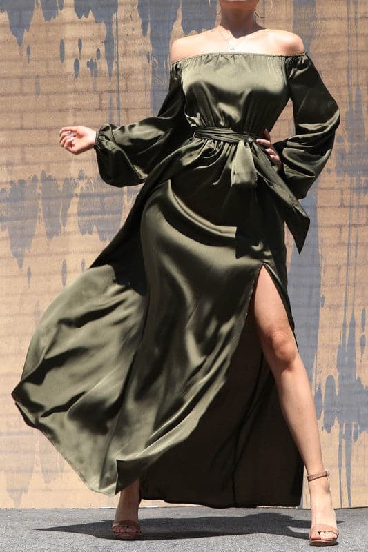 Off the Shoulder Olive Maxi Dress