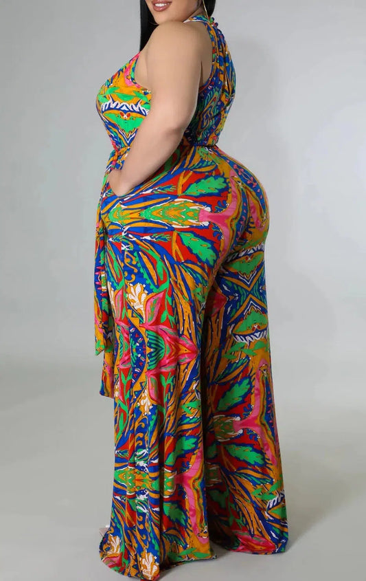 Sleeveless Tropical Jumpsuit (Curvy)