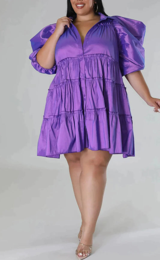 Puff Shoulder Babydoll Dress (Curvy)