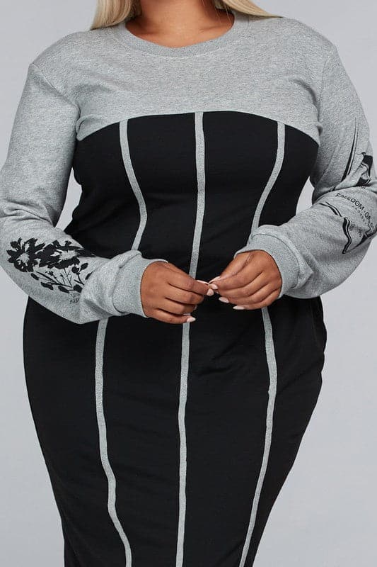 Two Tone Black Sweater Midi (Curvy)