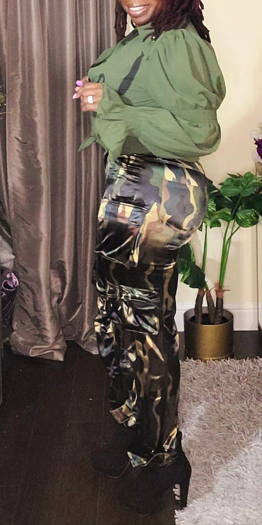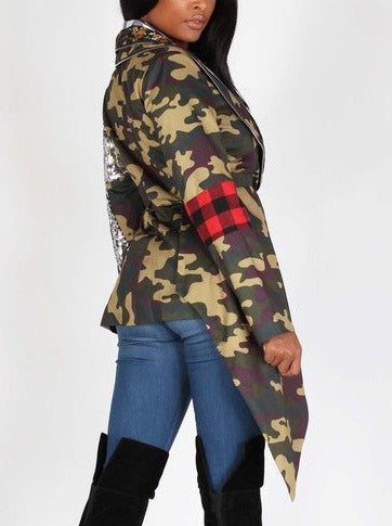 Camo Print Asymmetrical Jacket w/ Sequins (Curvy)