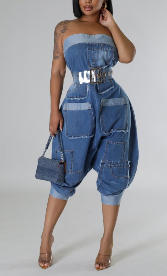 Sold outDenim Patchwork Bandeau Jumpsuit