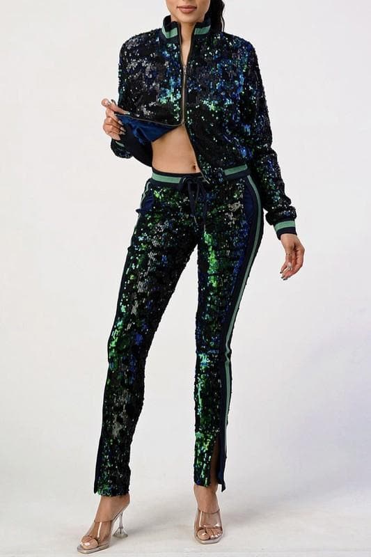 Multi Sequins Bomber & Pant Set (Size Up)