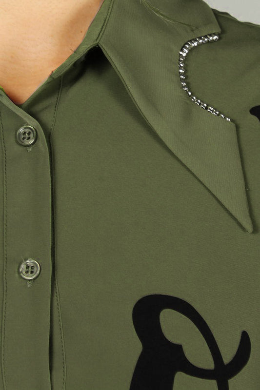 "CIAO" Print Blouse w/Rhinestones