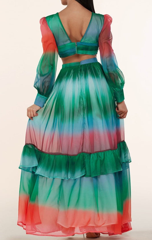Ombre Cutout Tiered Maxi Dress