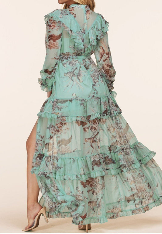Floral Print Long Sleeve Maxi Dress