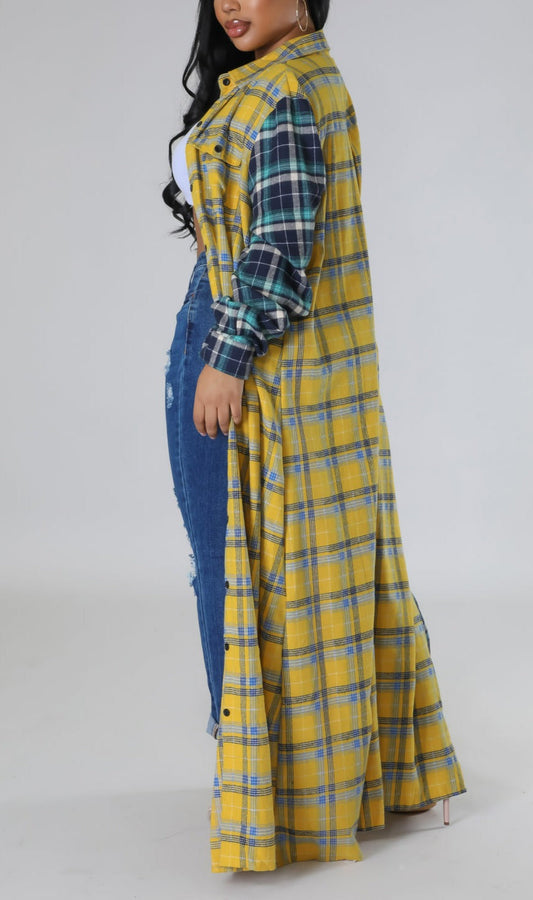 Oversized Long Flannel Cardigan
