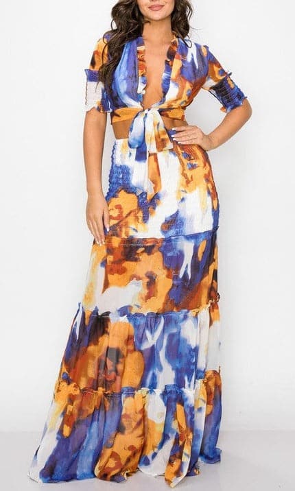 Two Piece Crop Top and Maxi Skirt (Curvy)