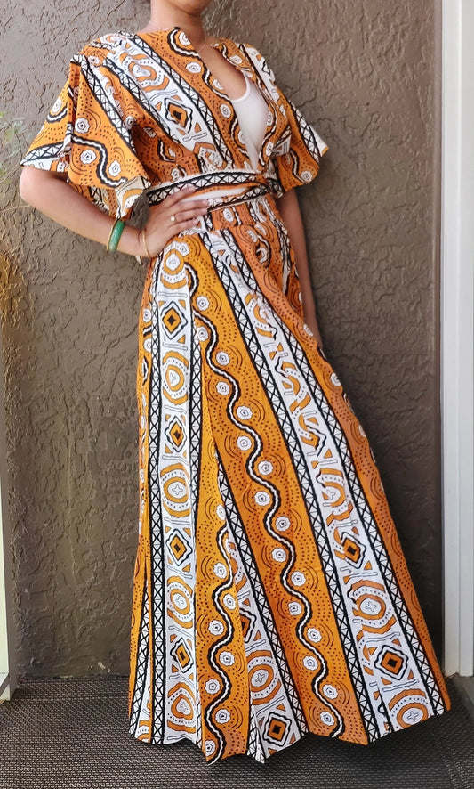 Tribal Mud Print Palazzo Pant and Crop Top (3 pc)