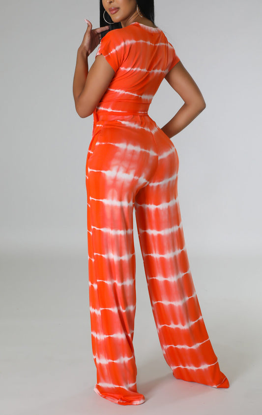 Deep Cowl Neck Cropped Top & Wide Leg Pants Set