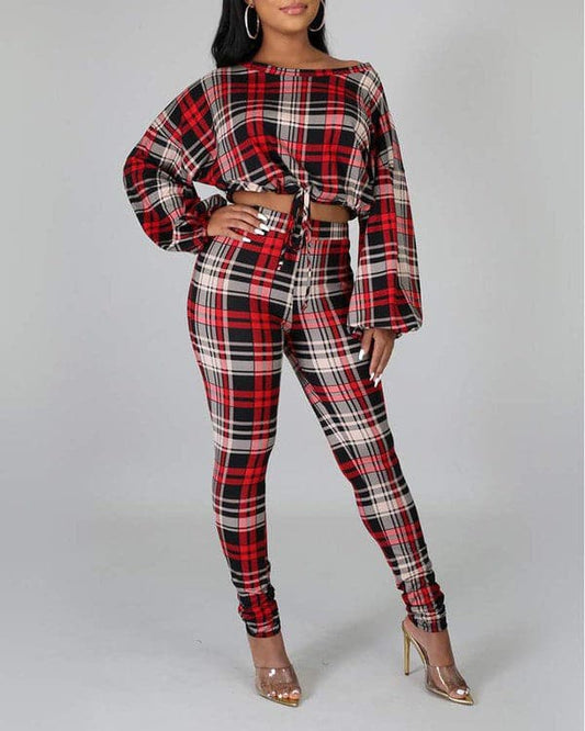 Drawstring Crop Top and Pants Set