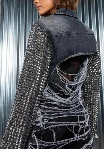 Ripped Denim Jacket with Studded Sleeves (LIMITED EDITION)