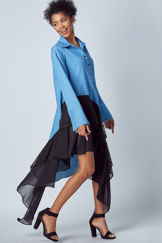 Sold outStretch Denim Dress/Top with Ruffles