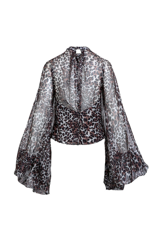 Leopard Printed Ruffle Necktie Chiffon Blouse