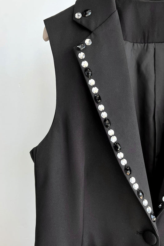 Long Tulle Vest W/Embellished Lapel