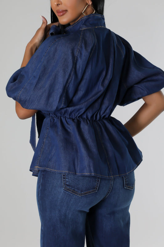 Dark Denim Blouse with Neck Tie